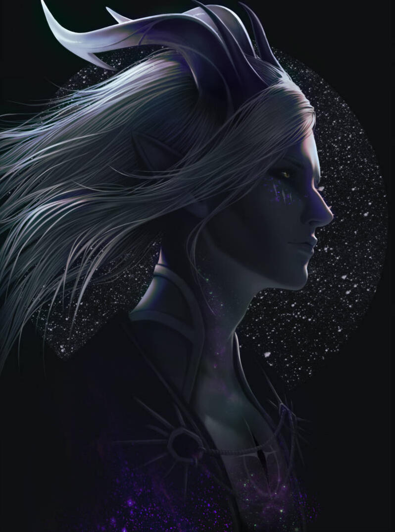 Appearance • Default Gradient Skin (Purple, Blue and Black) with a vortex in the center of his chest and scatterings of stardust across his body «